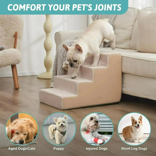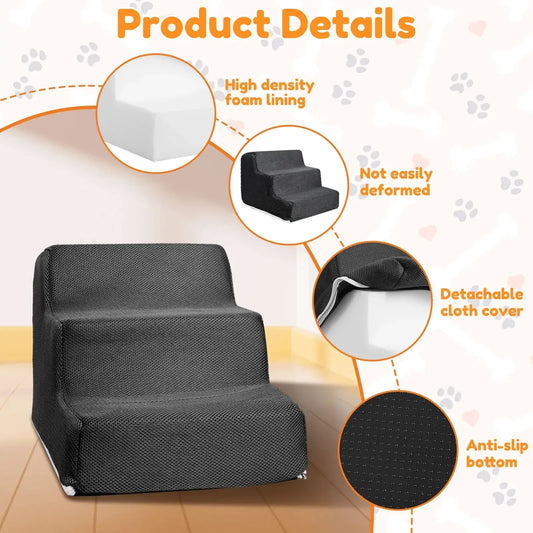 Foam dog stairs for bed. Lightweight, soft, perfect for small or older dogs.