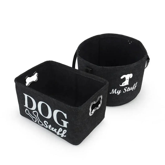 This black felt dog toy basket offers a practical and stylish way to organize your pet’s toys and essentials. This rectangular storage bin is perfect for holding squeaky toys, chews, grooming tools, or even dog clothing. Made from high-quality felt, it’s soft to the touch but sturdy enough to maintain its shape and stand on its own. Its minimalist black color blends seamlessly with any interior decor, making it a sleek addition to any dog owner's home.
