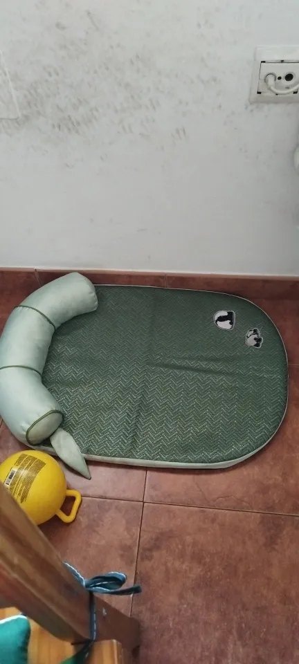 Keep your pet refreshed during hot days with this ice-bean fabric dog cooling pad. Its unique 3D bean-shaped texture disperses heat quickly, providing a breathable and moisture-proof surface that keeps dogs comfortable. The built-in pillow offers neck and head support, while the sponge filling adapts to posture without losing shape. With a detachable, machine-washable cover and non-slip base, this cooling mat is as practical as it is comfortable. Lightweight and portable, it’s perfect for crates, car seats, shaded gardens, or everyday indoor lounging, ensuring pets stay cool and supported all summer long.