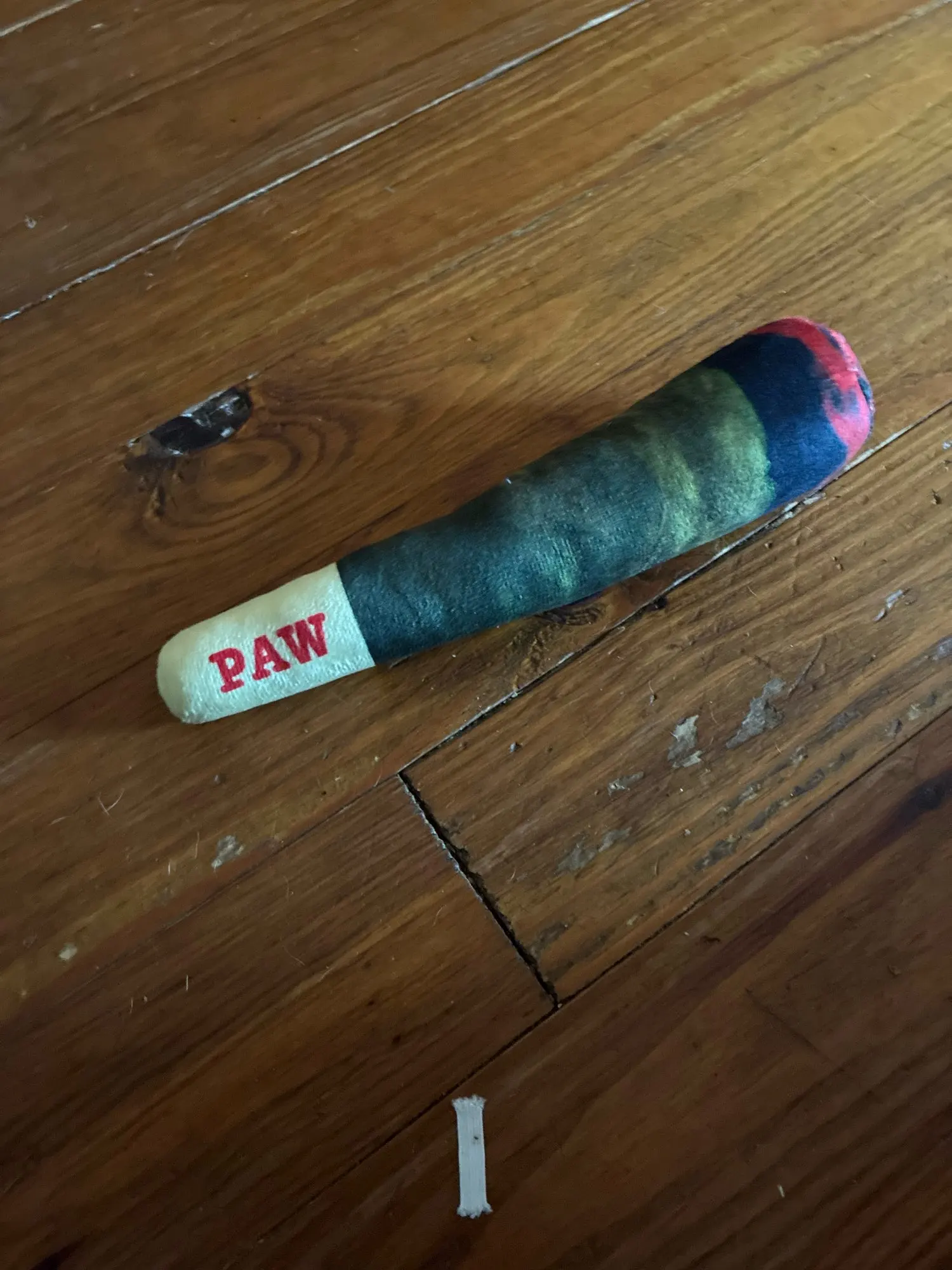Get your pup puffin' with excitement! This hilarious plush joint dog toy is built for play, designed to entertain, and tough enough for regular chewing. Inside the soft fleece exterior lies a hidden squeaker and a sturdy mesh lining for extra durability. It’s the perfect mix of humor and function—great for dogs that love to bite, toss, and shake. Lightweight and perfectly sized for small to medium breeds.