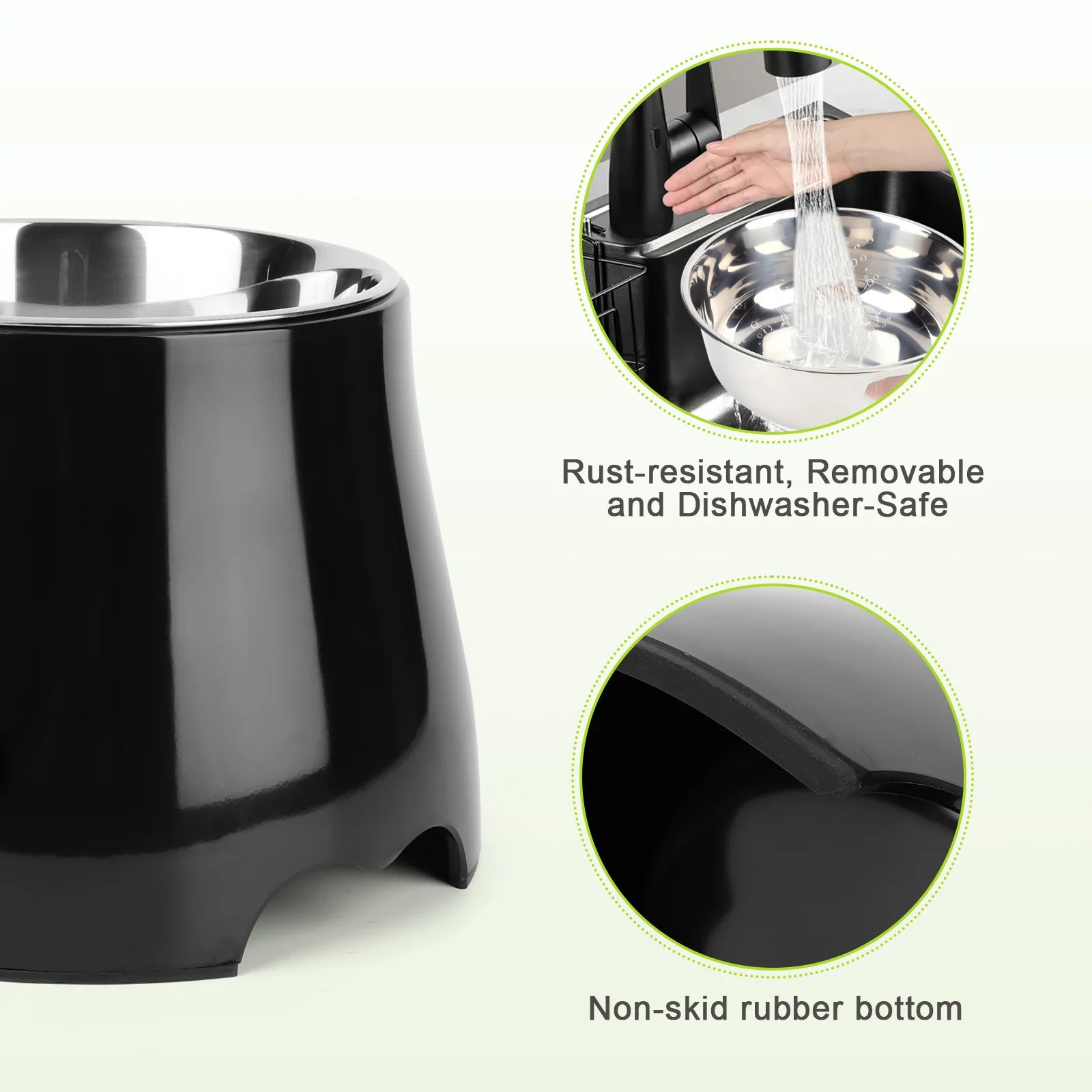 The anti-skid rubber base helps keep the bowl firmly in place during meals. This reduces sliding, tipping, and spills, which is especially useful for enthusiastic eaters or larger dogs. It also helps protect floors from scratches and water marks.
